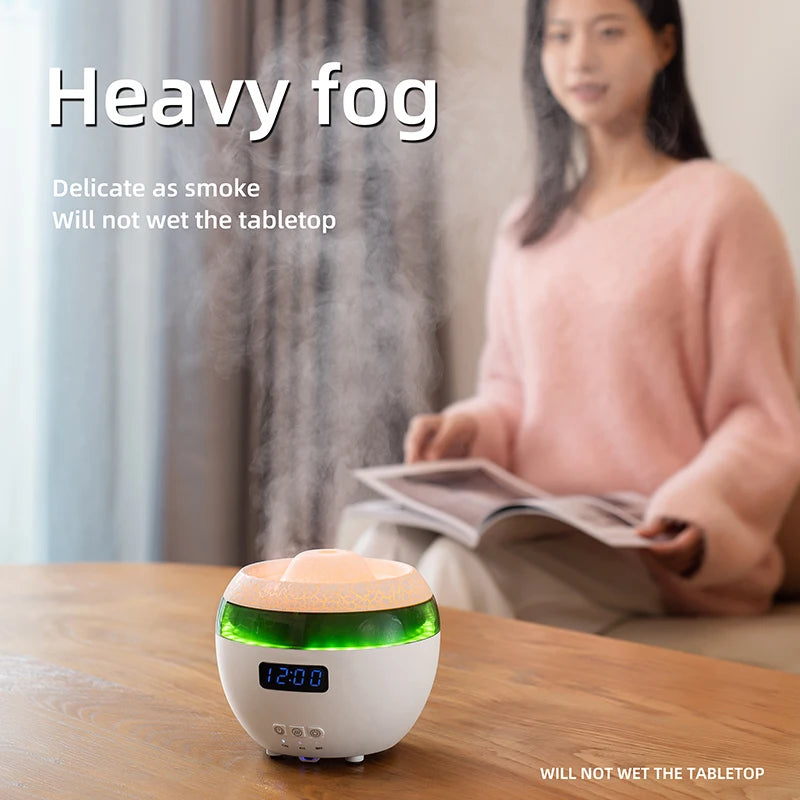 🌿GlowMist 5-in-1 Smart Diffuser & Clock – Essential Oil Humidifier with Flame Light Ambiance