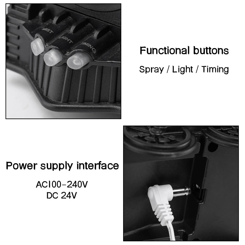 Operation Modes: Spray ring mode, direct mist mode, 2H / 8H timer